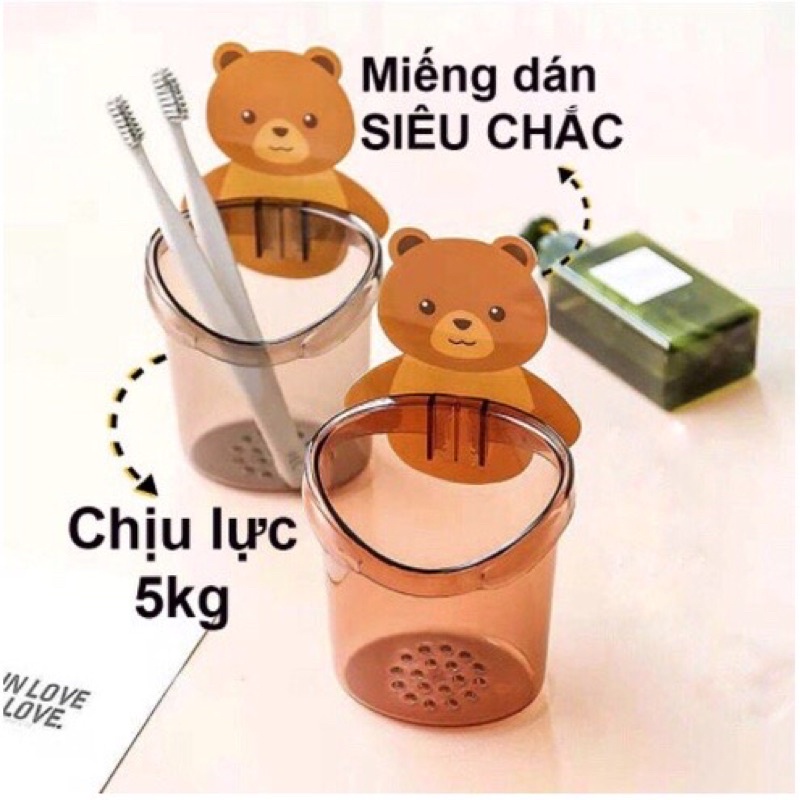 Cốc Đựng Bàn Chải, Kem Đánh Răng Hình Gấu Cute Dính Tường