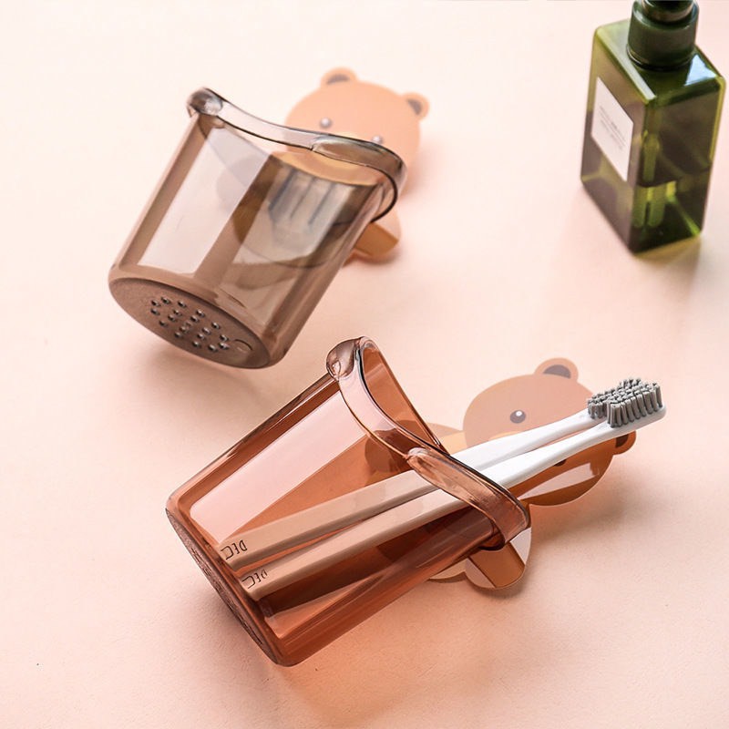 Cốc Đựng Bàn Chải Kem Đánh Răng Hình Gấu Kèm Miếng Dán Tường