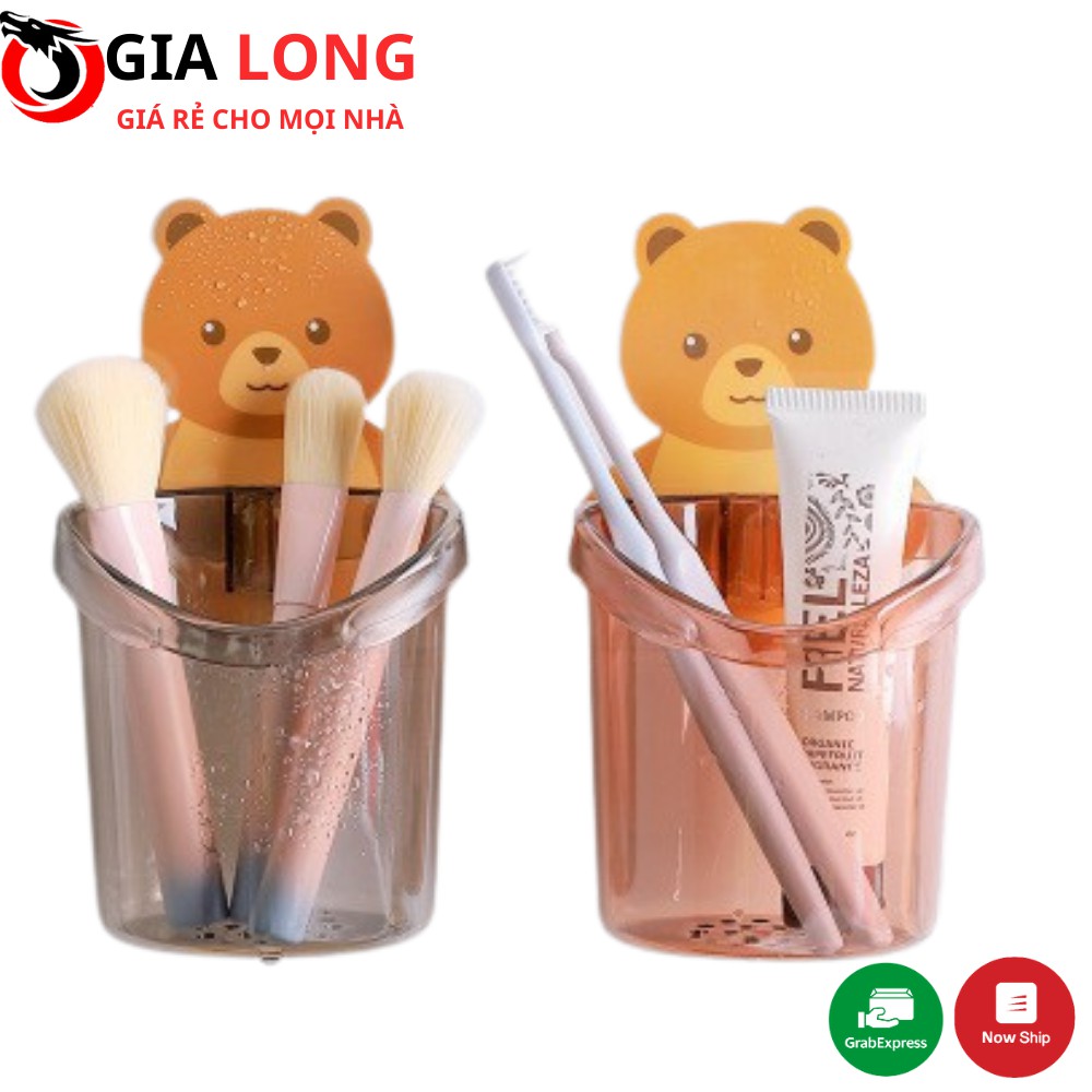 Cốc đựng bàn chải,kem đánh răng dán tường nhà tắm hình gấu siêu dính