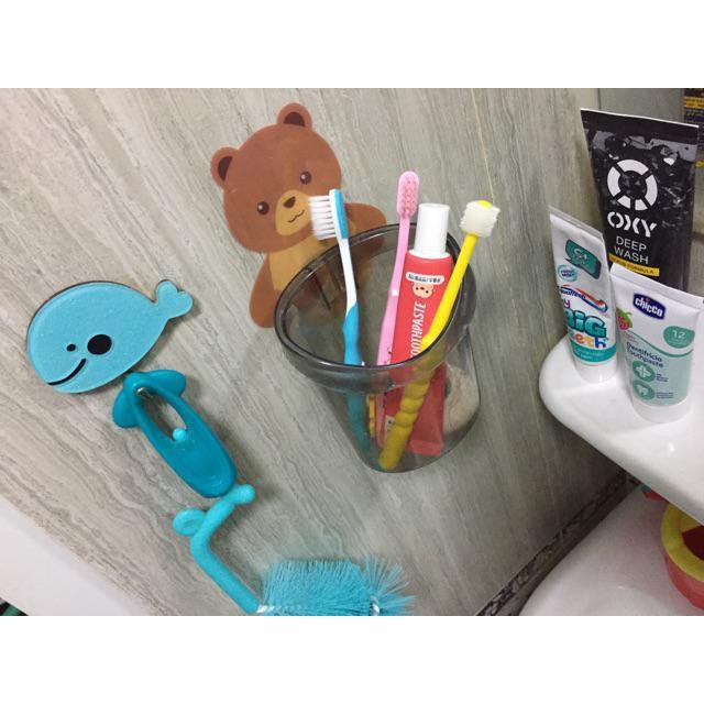 Cốc đựng bàn chải, kem đánh răng hình gấu dán tường