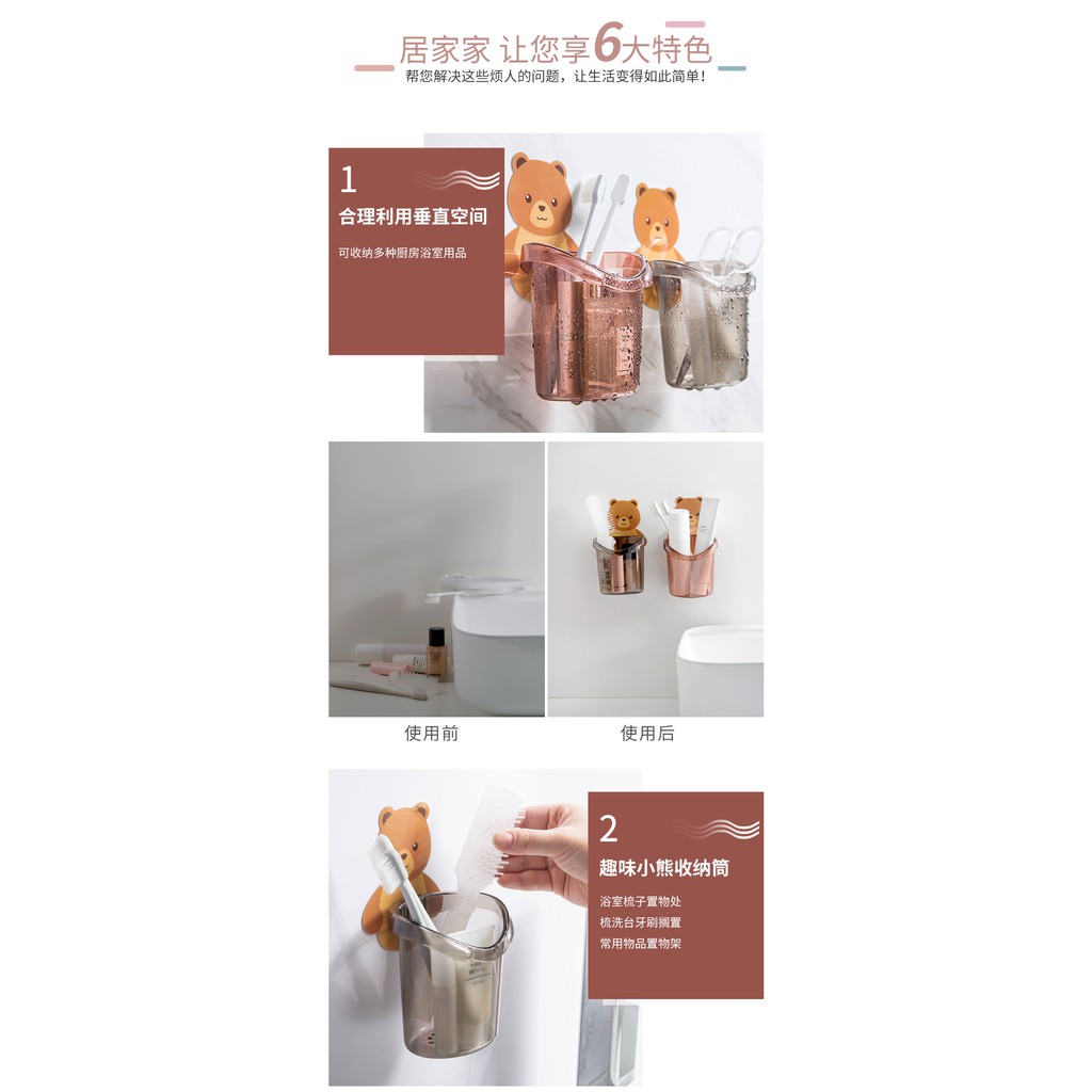 Giới thiệu Cốc Đựng Bàn Chải, Kem Đánh Răng Hình Gấu Cute Chất Liệu Nhựa Bền Đẹp Kèm Keo Dán Tường Siêu Dính Tiện Lợi [LOẠI DÀY]