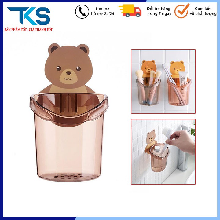 Cốc đựng bàn chải kem đánh răng dán tường hình gấu