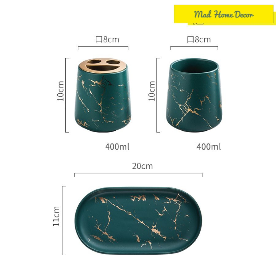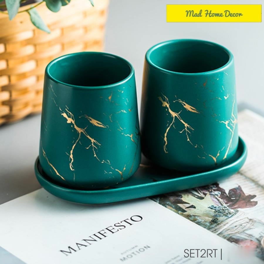 Set đôi cốc đánh răng,đựng bàn chải vân đá kèm khay sang chảnh.Đựng đồ hay decor trong phòng tắm đều siêu gọn gàng, sang và sạch nữa.