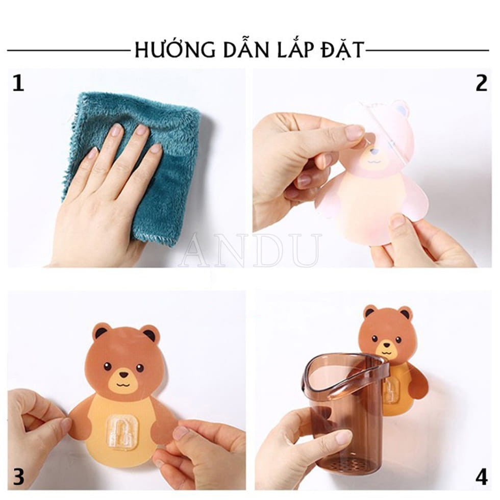 Cốc Đựng Bàn Chải Kem Đánh Răng, Ly Dán Tường Hình Gấu Siêu Tiện Lợi