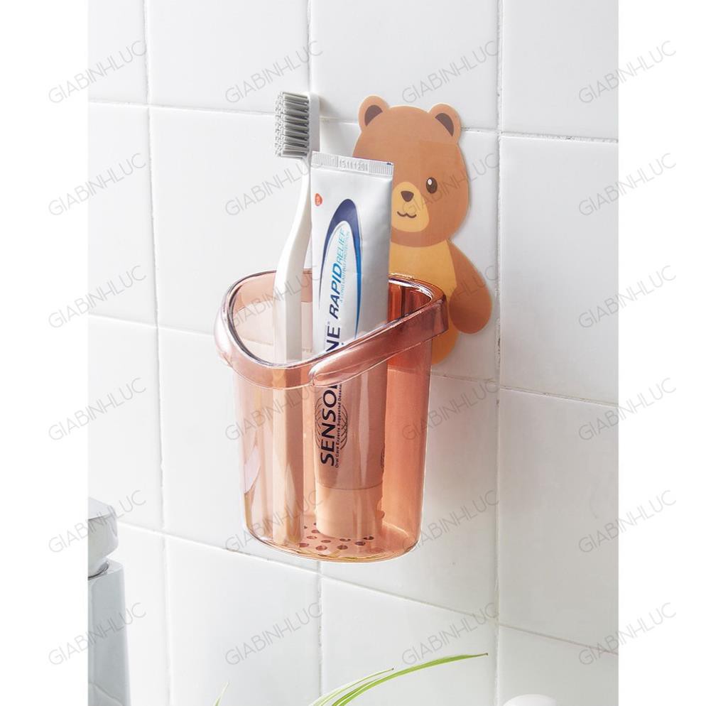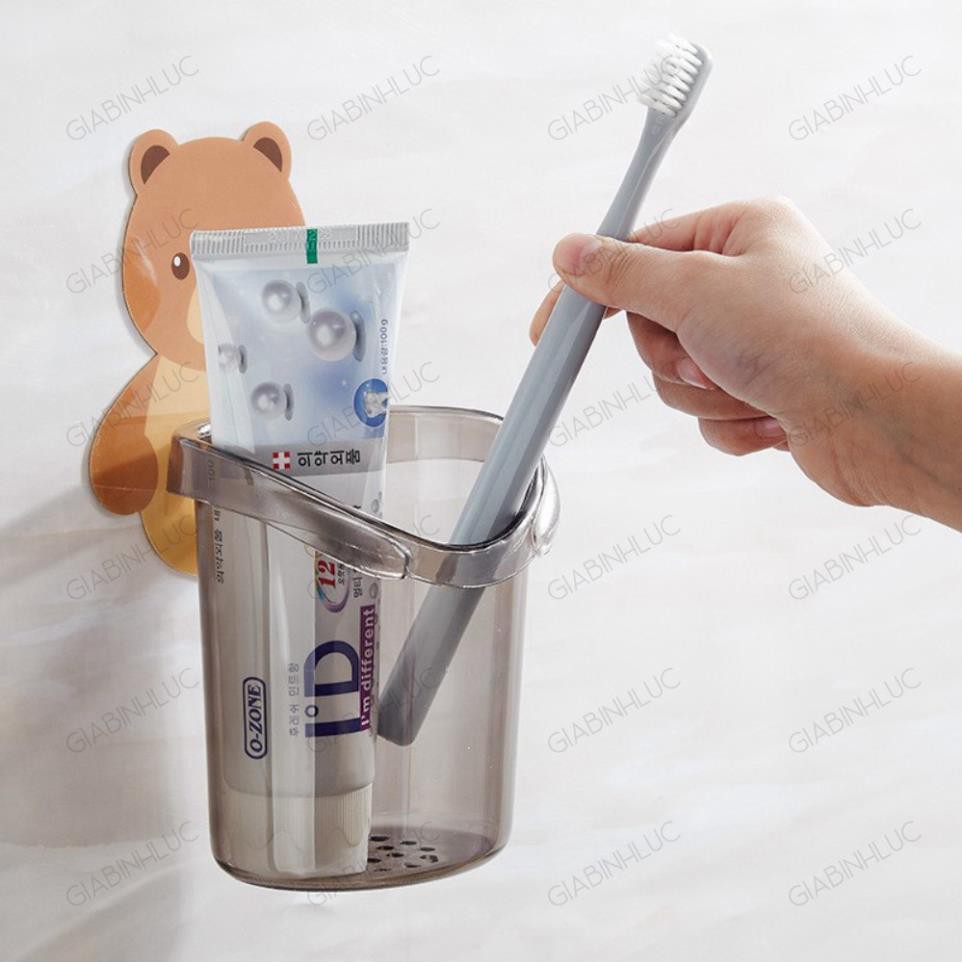 Cốc đựng bàn chải kem đánh răng dán tường kiểu con gấu dễ thương cốc dánh tường đựng đồ dùng thông minh