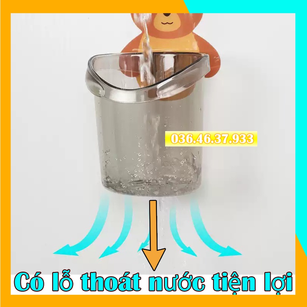Cốc đựng bàn chải và kem đánh răng hình gấu dán tường chịu lực tốt đa năng sang trọng