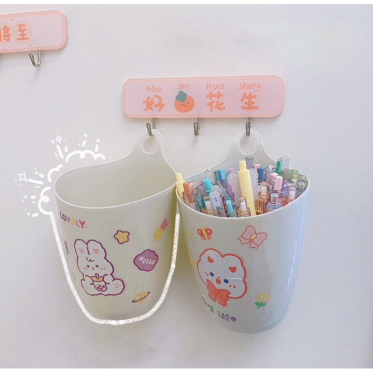 Cốc đựng bút, đựng bàn chải đánh răng bằng nhựa xinh xắn có móc treo tiện lợi