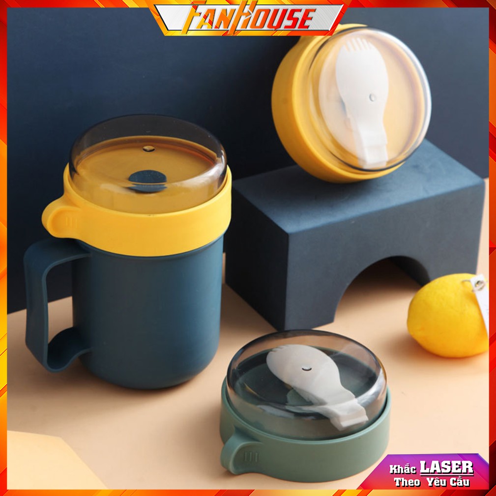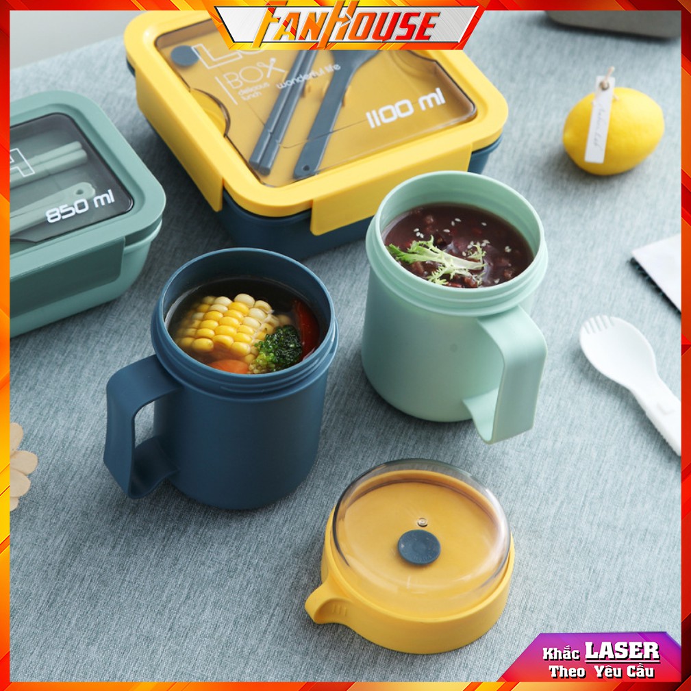 Nhà cửa & Đời sống > Dụng cụ nhà bếp > Dụng cụ đo lường || Cốc đựng canh 500ml giữ nhiệt 8h chống tràn tuyệt đối Fan House tặng kèm thìa dĩa đa năng, bộ cọ rửaCòn hàng