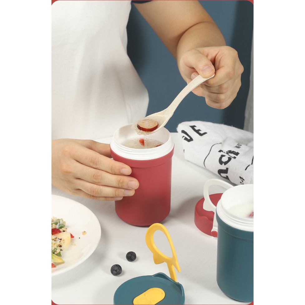 Giới thiệu Cốc Đựng Canh Có Quai xách - 300ML - Làm Từ Lúa Mạch An Toàn - Có thìa đi kèm