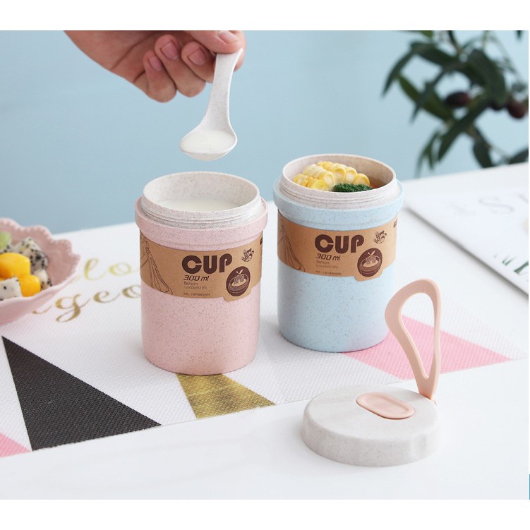 Cốc Đựng Canh Có Quai xách - 300ML - Làm Từ Lúa Mạch An Toàn - Có thìa đi kèm