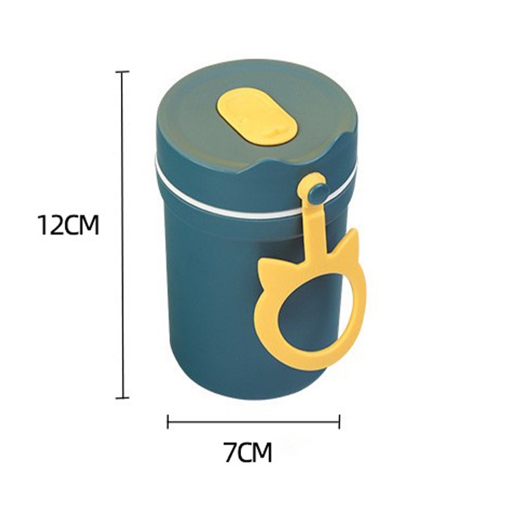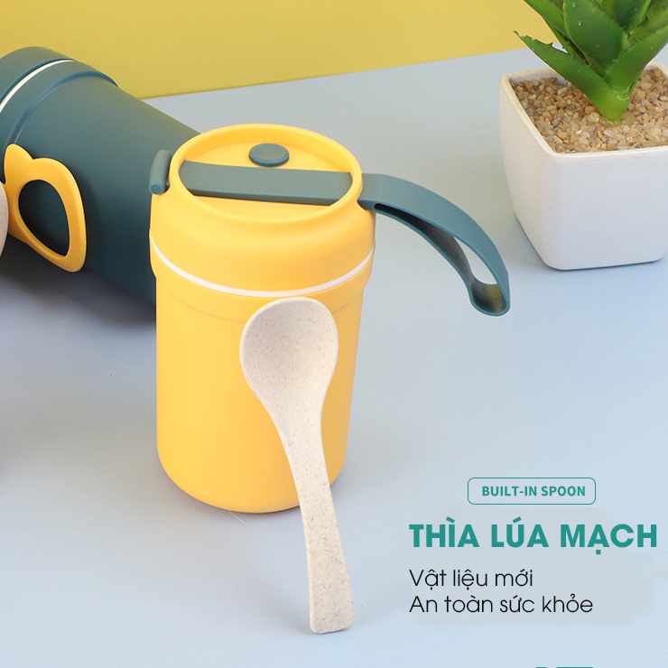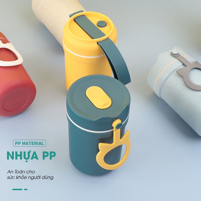 Cốc Đựng Canh Súp Lúa Mạch Giữ Nhiệt DK HARVEST - Thiết Kế Tai Mèo - Dung Tích 330ml- Kèm Muỗng, Ống Hút