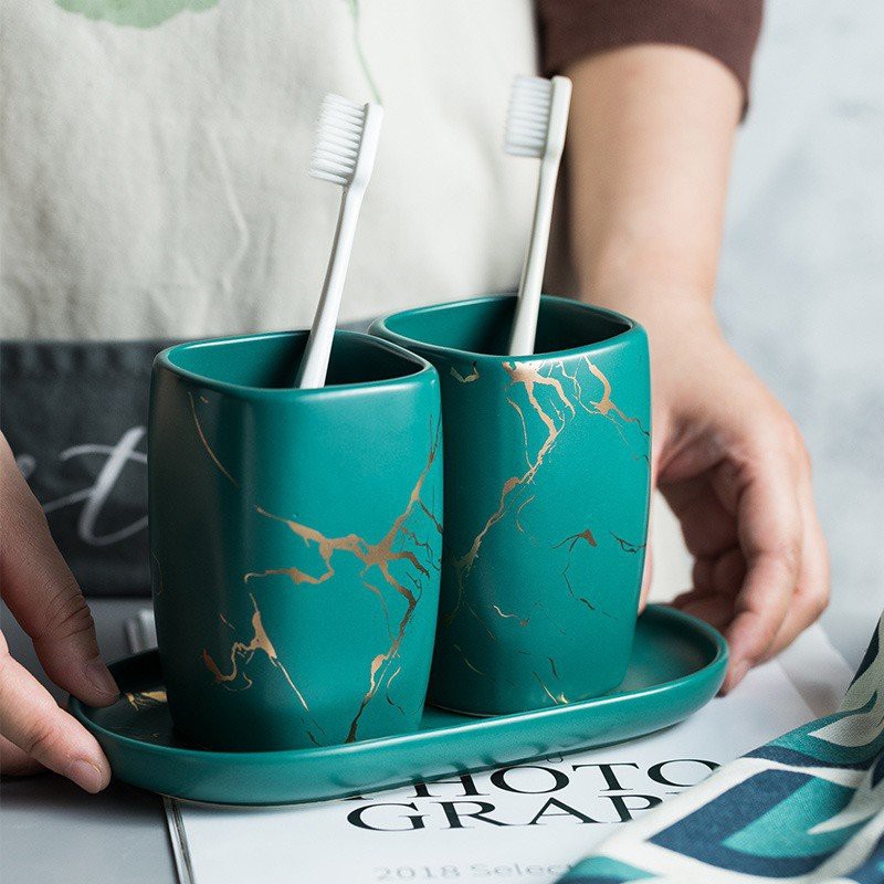 Nhà cửa & Đời sống > Đồ dùng phòng tắm > Kệ đựng bàn chải, kệ nhả kem đánh răng || Bộ Cốc Đựng Kem, Bàn Chải Đánh Răng Bằng Sứ Sang Trọng ( Không Bao Gồm Khay)Còn hàng
