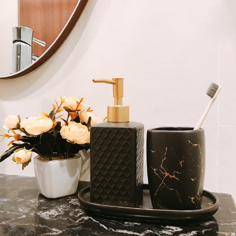 Bộ Cốc Đựng Kem, Bàn Chải Đánh Răng Bằng Sứ Sang Trọng Decor Phòng Tắm Cực Xinh