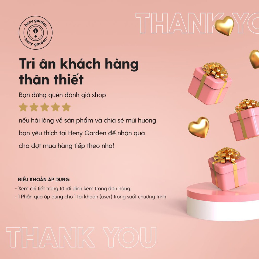 ⚫ Heny Garden có tặng kèm các bạn 3 mẫu thử tinh dầu với đơn hàng bất kỳ nhen. Bạn thích tinh dầu nào ghi chú vào đơn hàng để anh chuẩn bị riêng cho các bạn nhé.