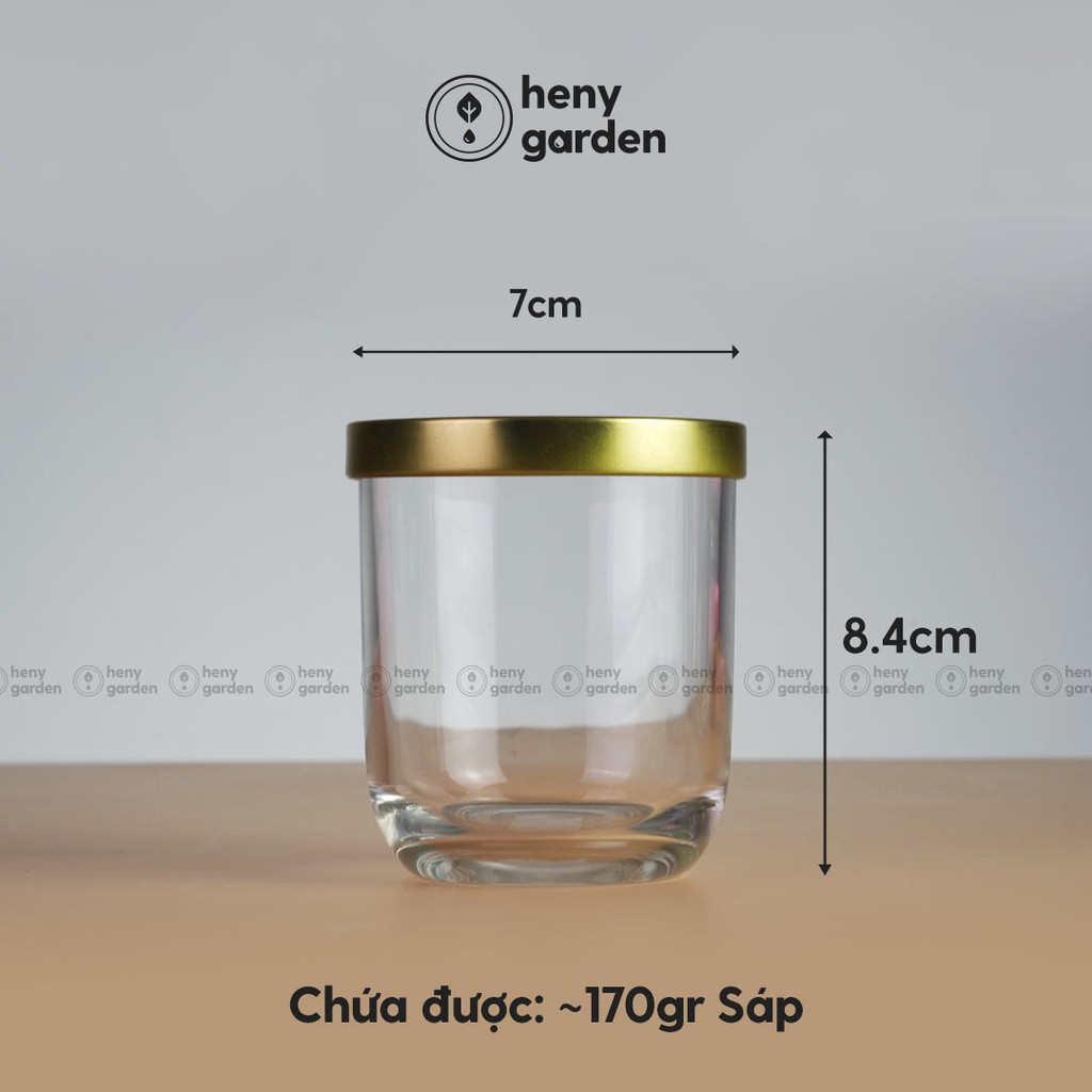 Cốc Đựng Nến Nắp Vàng Gold Heny Garden HN14 – Tự Làm Nến Thơm Handmade, Đựng Trà & Bột – Tặng Tinh Dầu Mẫu Thử