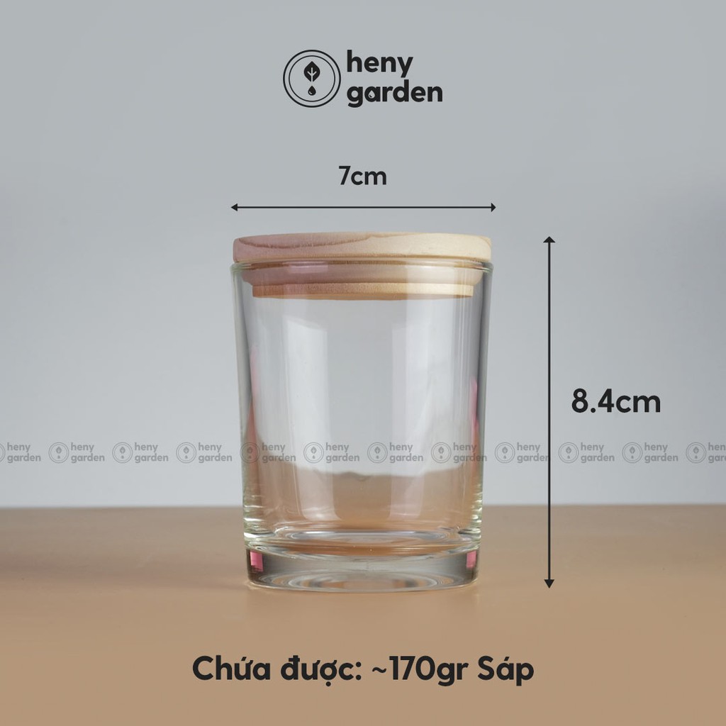 Cốc Đựng Nến Thủy Tinh Cao Cấp Kèm Nắp Tre HN06 Heny Garden – Tự Làm Nến Thơm Handmade – Tặng Tinh Dầu Mẫu Thử