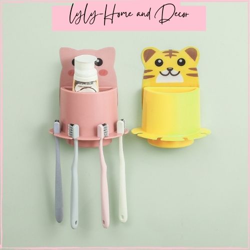 Cốc gắn tường phòng tắm hình động vật- Cốc dính tường có khe đựng bàn chải- Lyly