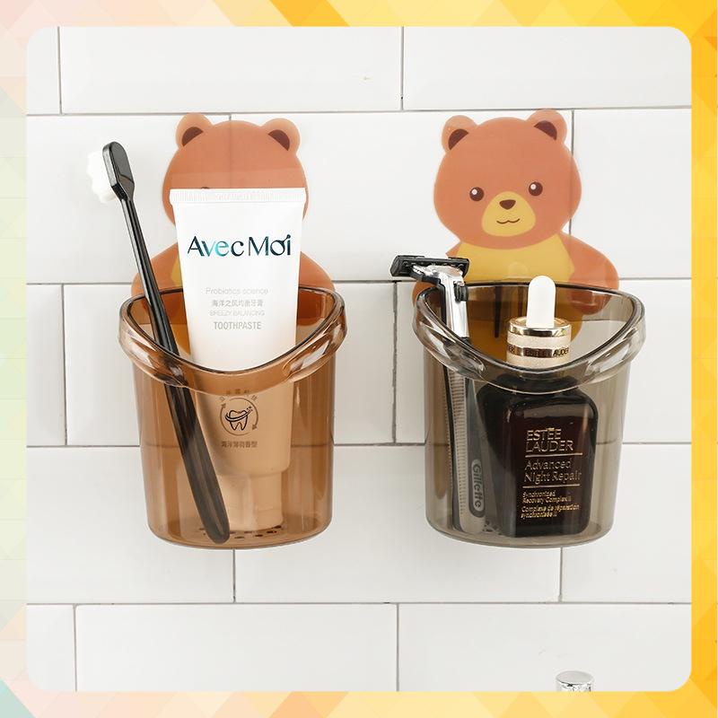 Cốc Gấu Cute Đựng Bàn Chải Kem Đánh Răng Dán Tường Đa Năng