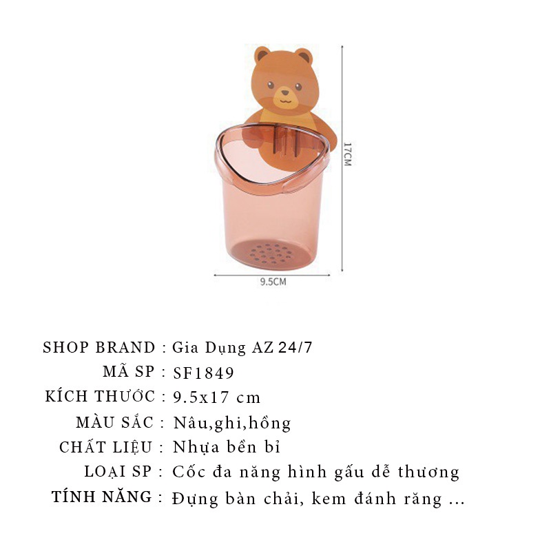 Cốc gấu đa năng đựng kem đánh răng, đựng bàn chải dán tường siêu chắc chắn SF1849* THÔNG TIN SẢN PHẨM