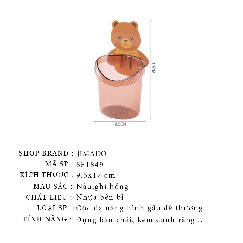 Cốc gấu đa năng đựng kem đánh răng đựng bàn chải dán tường siêu chắc chắn JIMADO SF1849* THÔNG TIN SẢN PHẨM