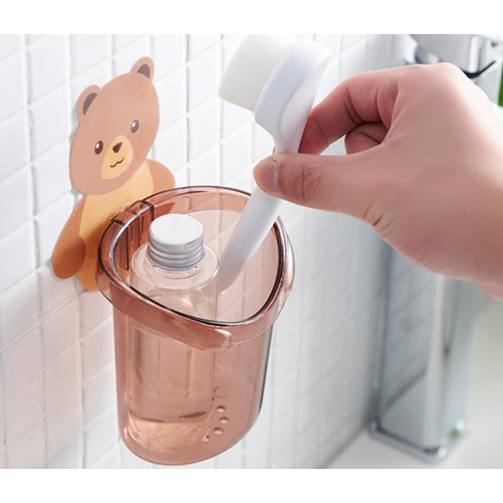 Cốc Gấu Dán Tường🧸Cốc Đựng Bàn Chải Kem Đánh Răng Cọ Trang Điểm Cốc Nhựa Cứng Gắn Móc Dán Siêu Dính Chịu Lực Bền Đẹp