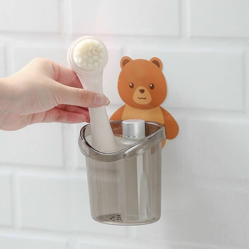 Cốc gấu dán tường đựng bàn chải kem đánh răng cốc đựng bàn chải treo tường hình gấu nâu dễ thương