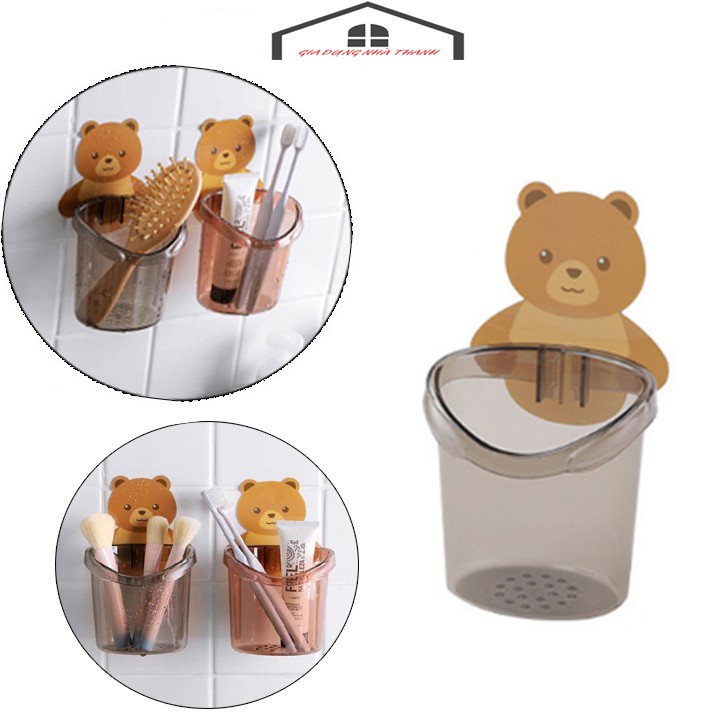 Cốc Gấu Dán Tường Để Bàn Chải Đánh Răng Hình Gấu Có Lỗ Thoát Nước Tiện Lợi RB01