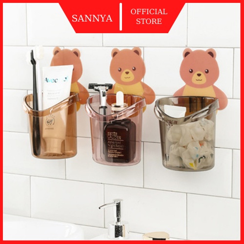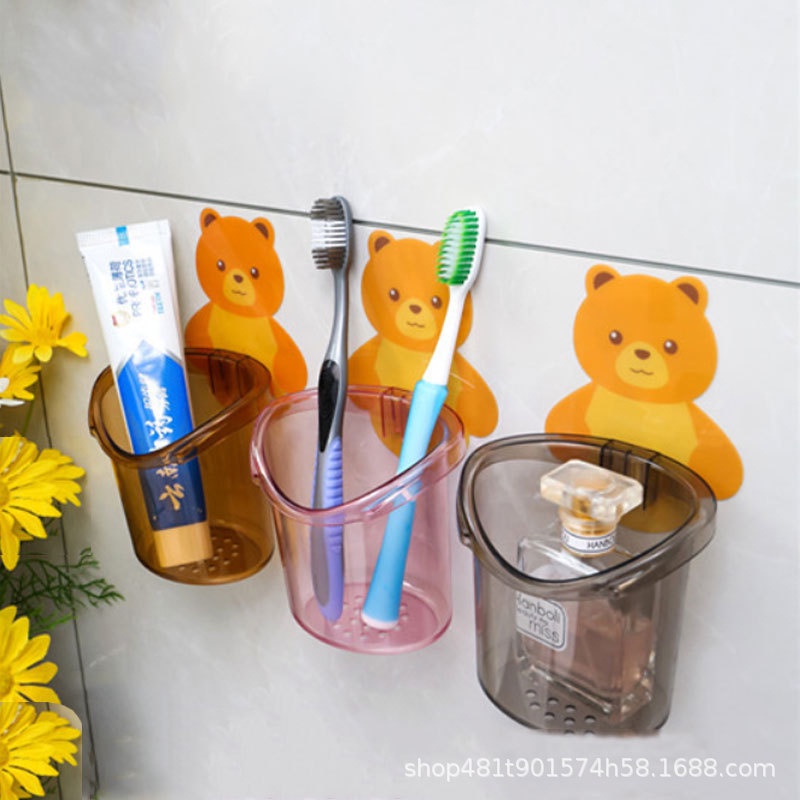 Cốc gấu dán tường để bàn chải đánh răng hình gấu có lỗ thoát nước tiện lợi