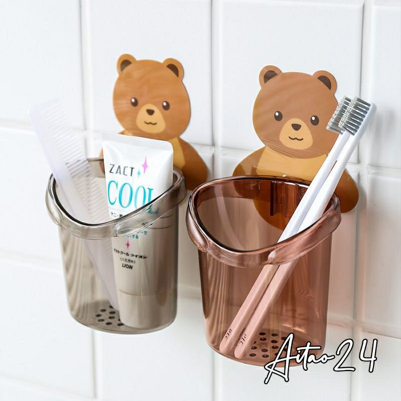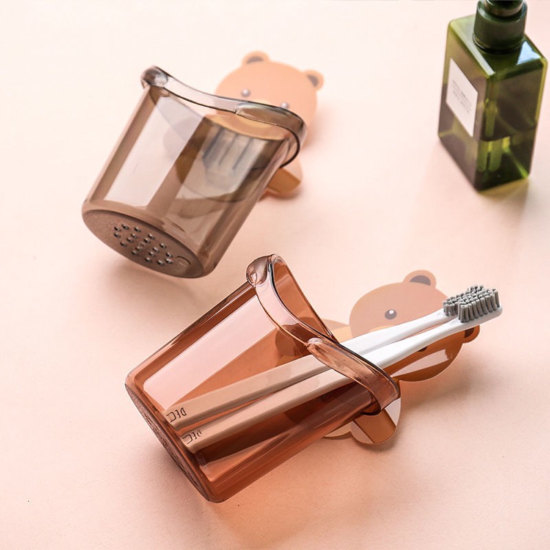 Cốc gấu dán tường để bàn chải đánh răng hình gấu có lỗ thoát nước tiện lợi