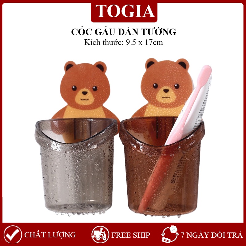 Cốc Gấu Dán Tường Để Bàn Chải Đánh Răng Hình Gấu Có Lỗ Thoát Nước Tiện, Siêu Dính, Siêu Chắc Lợi 9.5x17cm