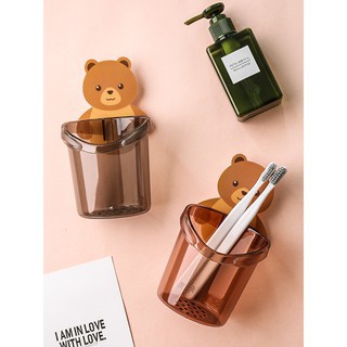 Cốc Gấu Dán Tường Để Bàn Chải Đánh Răng Hình Gấu Có Lỗ Thoát Nước Tiện Lợi