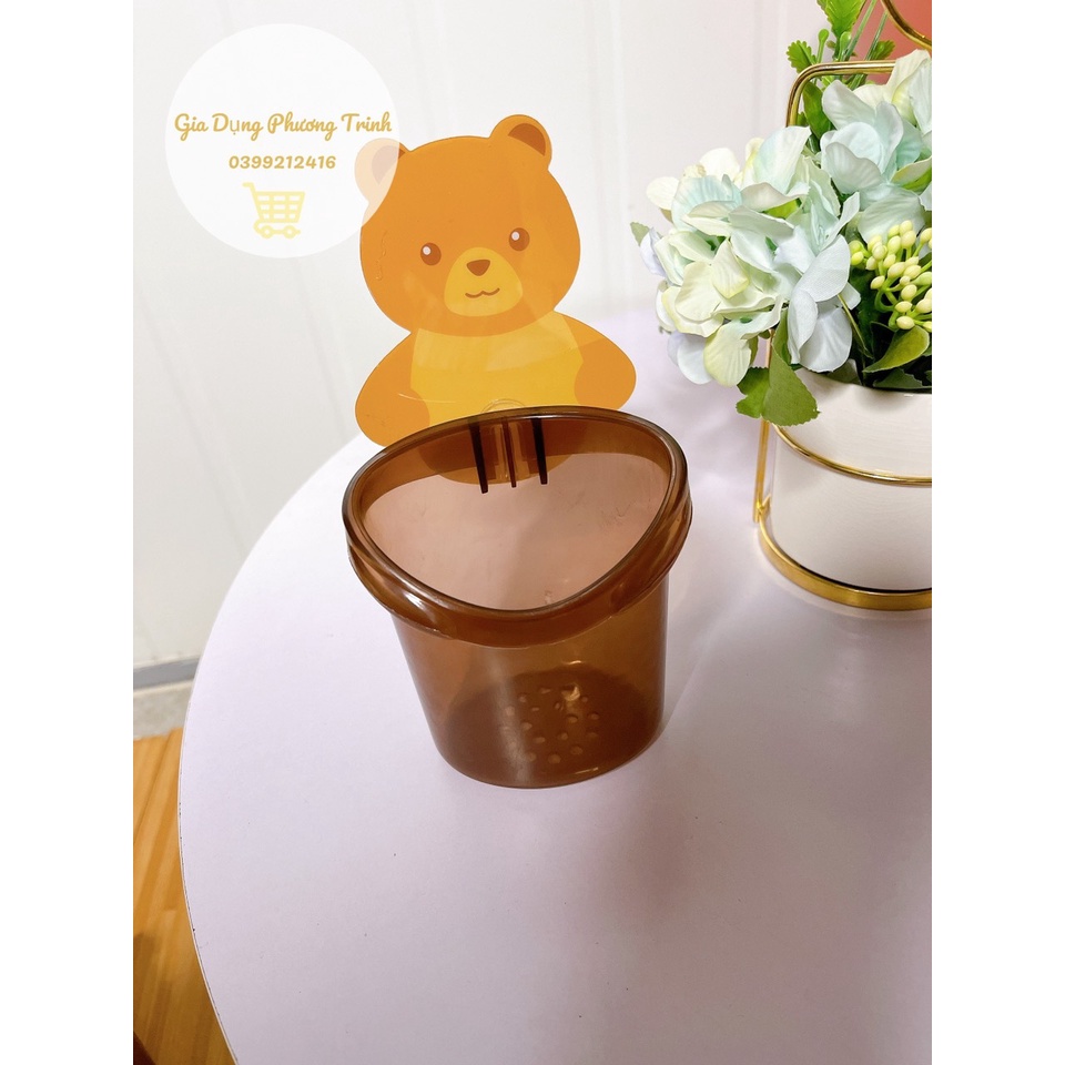 Cốc gấu dán tường để bàn chải đánh răng hình gấu có lỗ thoát nước tiện lợi