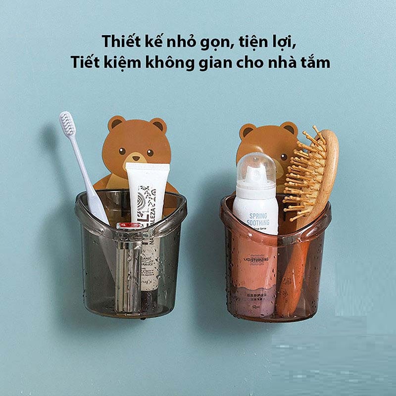 Cốc Gấu Dán Tường Để Bàn Chải Đánh Răng Hình Gấu Có Lỗ Thoát Nước Tiện Dụng