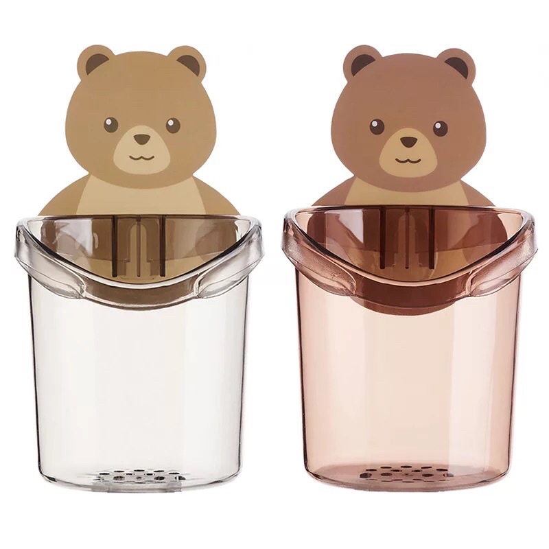 Cốc Gấu Dán Tường Để Bàn Chải Đánh Răng Hình Gấu Có Lỗ Thoát Nước Tiện Lợi