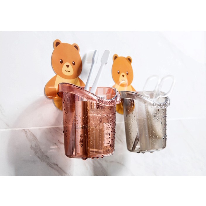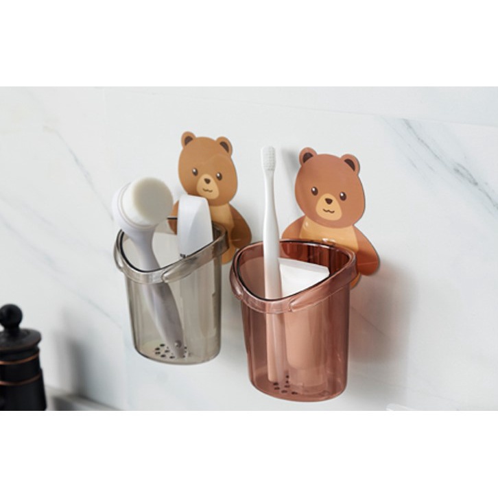 Cốc Gấu Dán Tường Để Bàn Chải Đánh Răng Hình Gấu Có Lỗ Thoát Nước Tiện Lợi