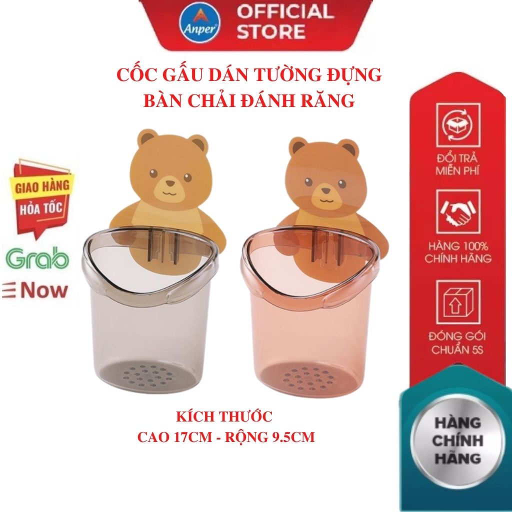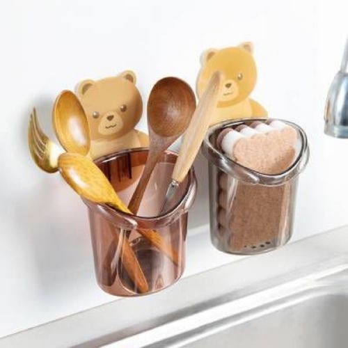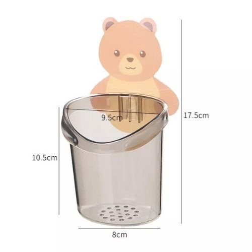 Cốc Gấu Dán Tường Để Bàn Chải Đánh Răng Hình Gấu Có Lỗ Thoát Nước Tiện Lợi