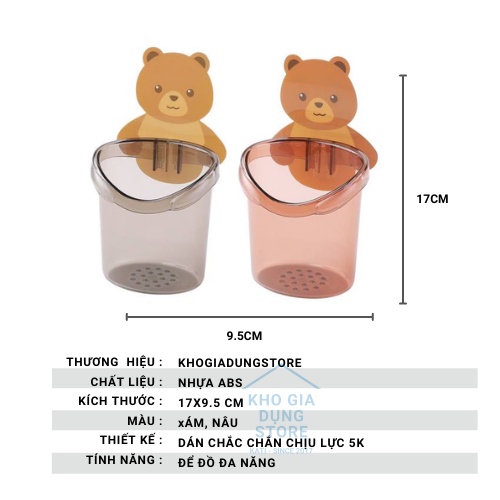 Cốc Gấu Dán Tường Để Bàn Chải Đánh Răng Hình Gấu Có Lỗ Thoát Nước Tiện Lợi