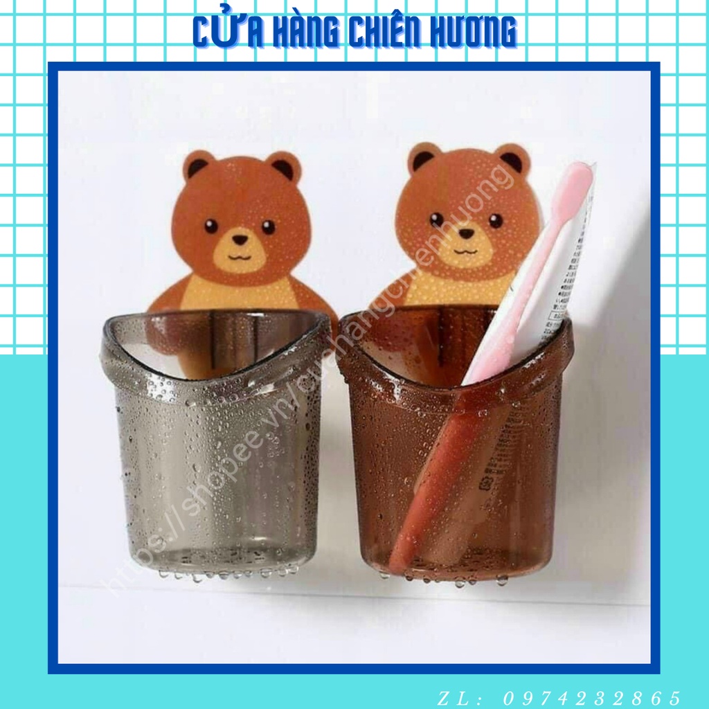 Cốc Gấu Dán Tường Để Bàn Chải Đánh Răng Hình Gấu Có Lỗ Thoát Nước Tiện Lợi