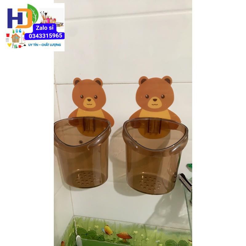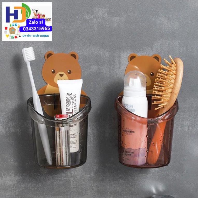 Cốc gấu dán tường để bàn chải đánh răng hình gấu có lỗ thoát nước tiện lợi
