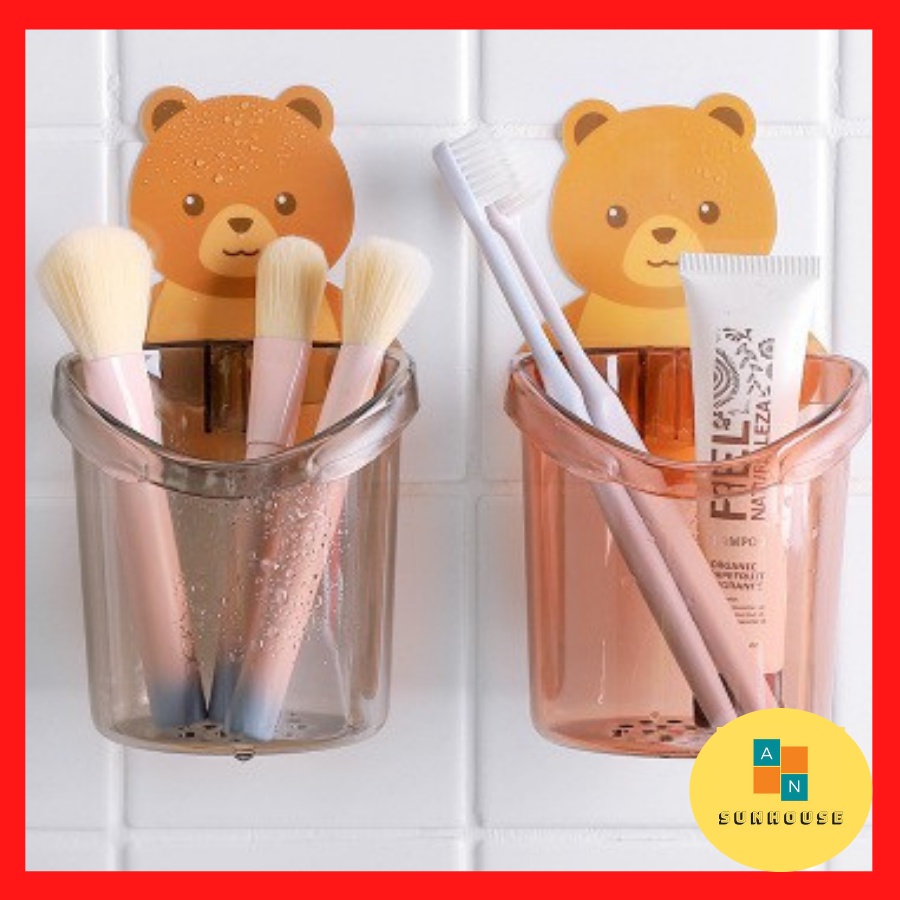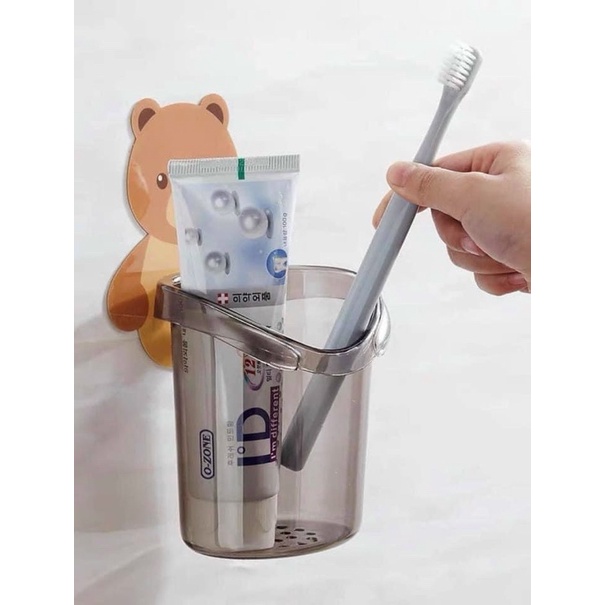 Cốc Gấu Dán Tường Để Bàn Chải Đánh Răng Hình Gấu Có Lỗ Thoát Nước Tiện Lợi