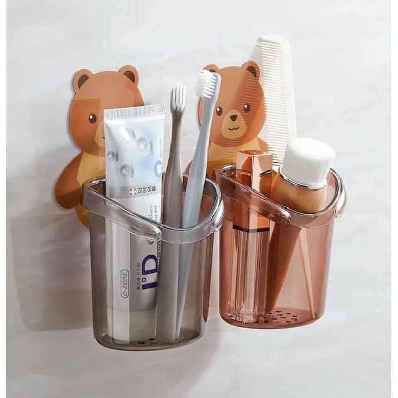 Nhà cửa & Đời sống > Đồ dùng phòng tắm > Kệ đựng bàn chải, kệ nhả kem đánh răng || Cốc Gấu Dán Tường Để Bàn Chải Đánh Răng Hình Gấu Có Lỗ Thoát Nước Tiện LợiCòn hàng
