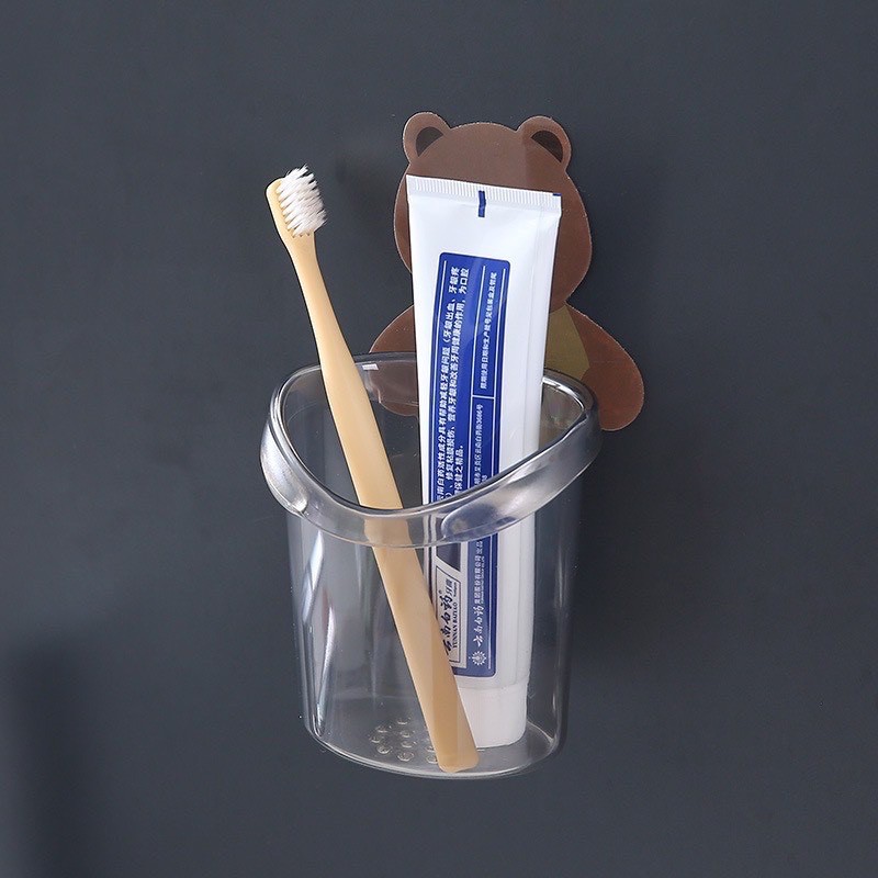 Cốc Gấu Dán Tường Để Bàn Chải Kem Đánh Răng