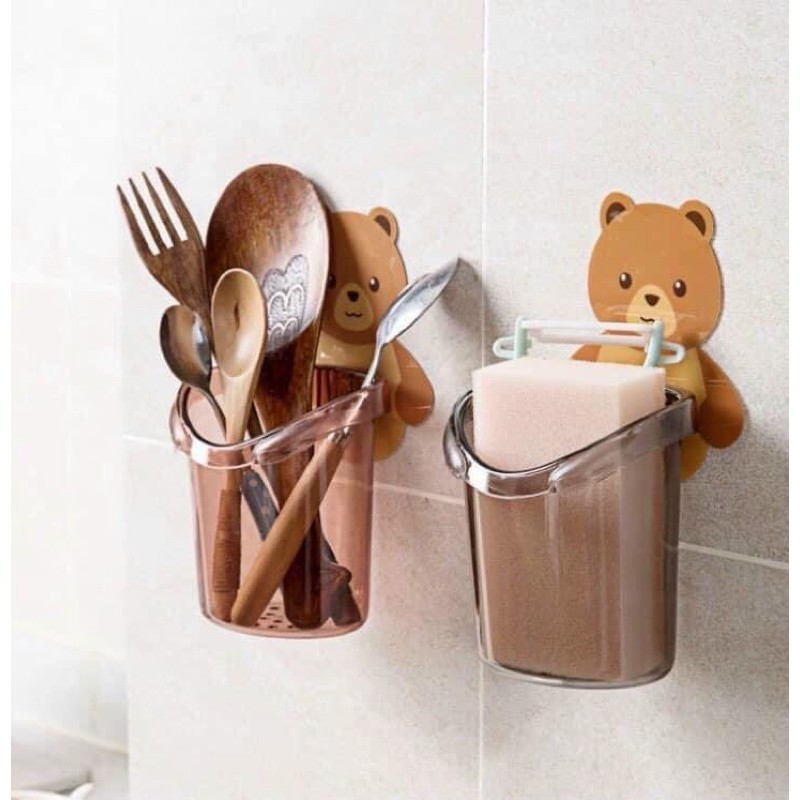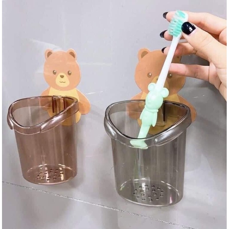 Cốc gấu dán tường để bàn chải, kem đánh răng.... siêu cute