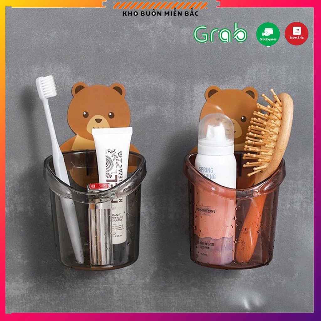 Nhà cửa & Đời sống > Đồ dùng phòng tắm > Kệ đựng bàn chải, kệ nhả kem đánh răng || Cốc gấu dán tường để bàn chải đánh răng hình gấu có lỗ thoát nước tiện lợi RunMass1Còn hàng
