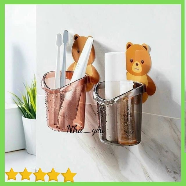 Nhà cửa & Đời sống > Đồ dùng phòng tắm > Kệ đựng bàn chải, kệ nhả kem đánh răng || Cốc Gấu Dán Tường Để Bàn Chải Đánh Răng Hình Gấu Có Lỗ Thoát Nước Tiện LợiCòn hàng