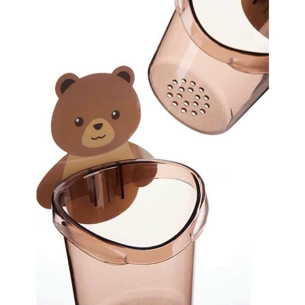 Cốc Gấu Dán Tường Để Bàn Chải Đánh Răng Hình Gấu Có Lỗ Thoát Nước Tiện Lợi