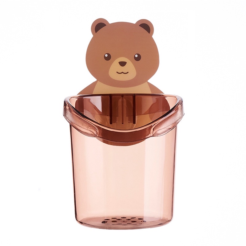 Cốc Gấu dán tường để bàn chải, kem đánh răng, ,có lỗ thoát nước tiện dụng