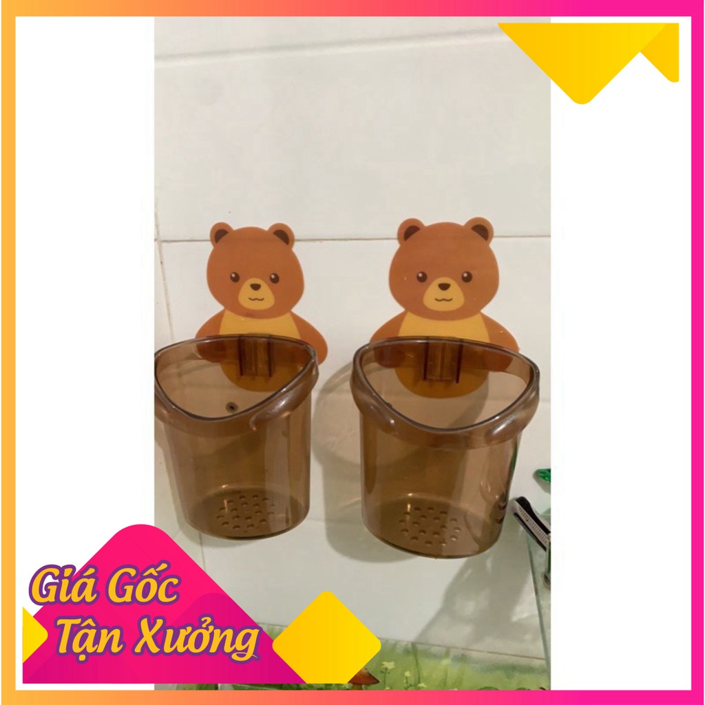 Cốc gấu dán tường để bàn chải đánh răng hình gấu có lỗ thoát nước tiện lợi