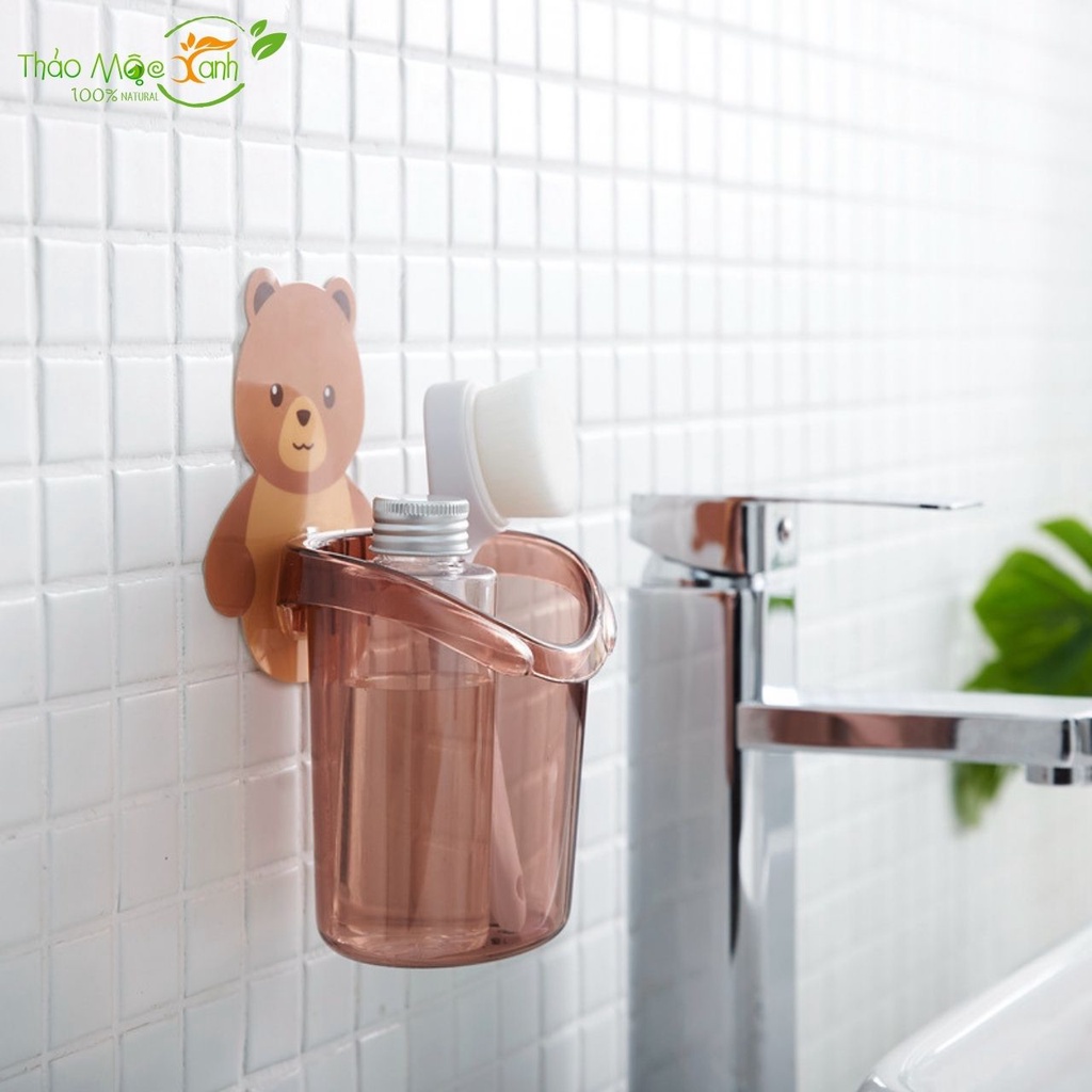 Cốc Gấu Dán Tường Đựng Bàn Chải - THẢO MỘC XANH VN- Miếng dán dính chắc chắn không cần khoan đục