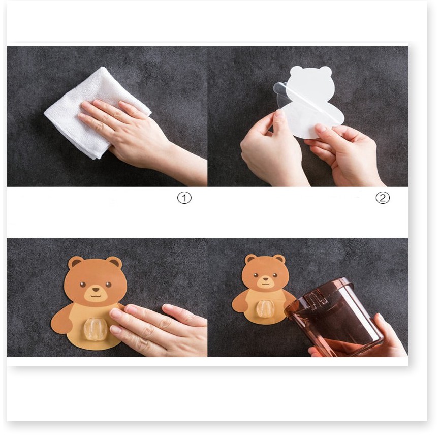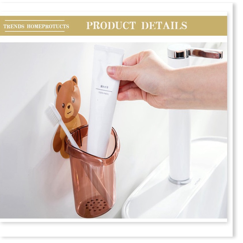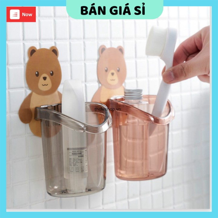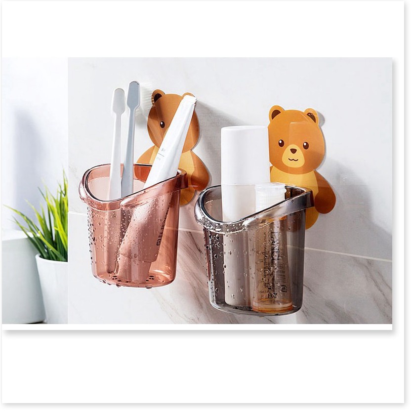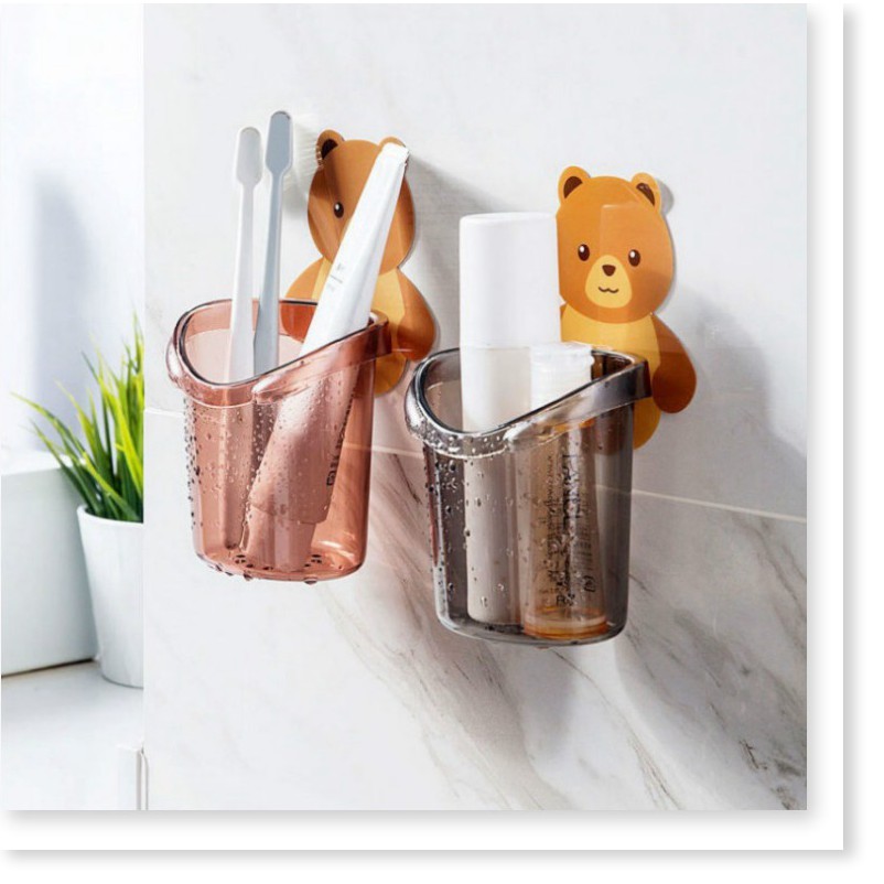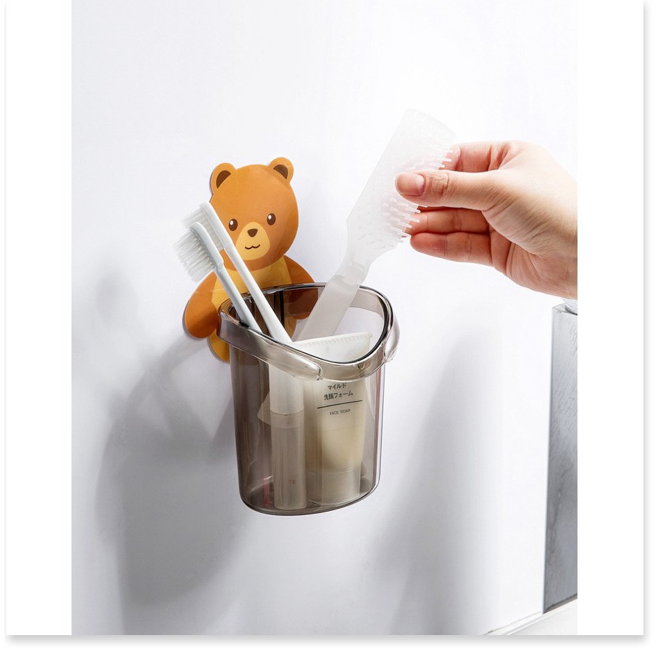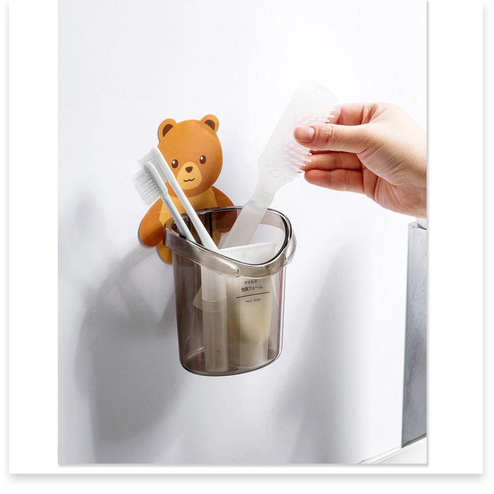 Cốc gấu dán tường đựng bàn chải kem đánh răng GIÁ VỐN Hộp đựng bàn chải đánh răng nhà tắm 9746